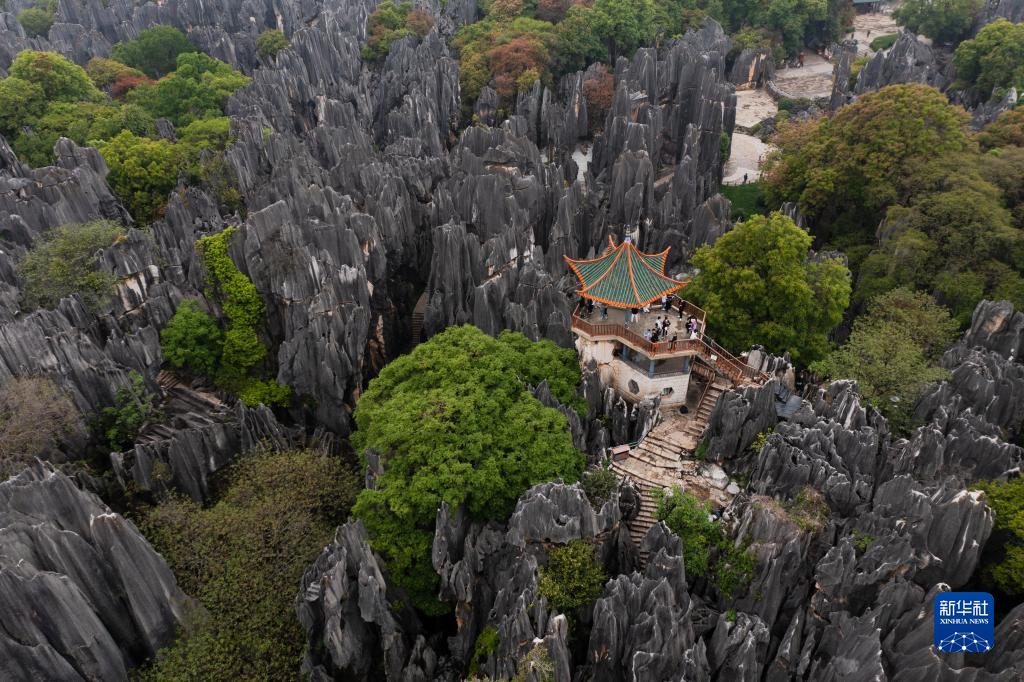 這是4月10日拍攝的大石林望峰亭(無(wú)人機照片)。