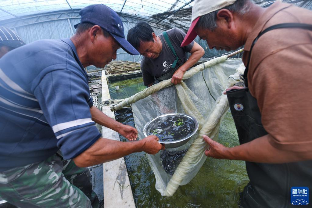 4月27日,在湖州市吳興區東林鎮保健村湖旺水產(chǎn)基地,工作人員從育苗池內打撈魚(yú)苗。 據悉,該水產(chǎn)基地規模達200畝,目前每日能孵化1000多萬(wàn)尾魚(yú)苗,日銷(xiāo)售額8萬(wàn)余元。