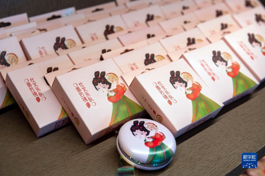 這是在河南博物院文創(chuàng )商店拍攝的“仕女樂(lè )隊”面包鏡(5月17日攝)。