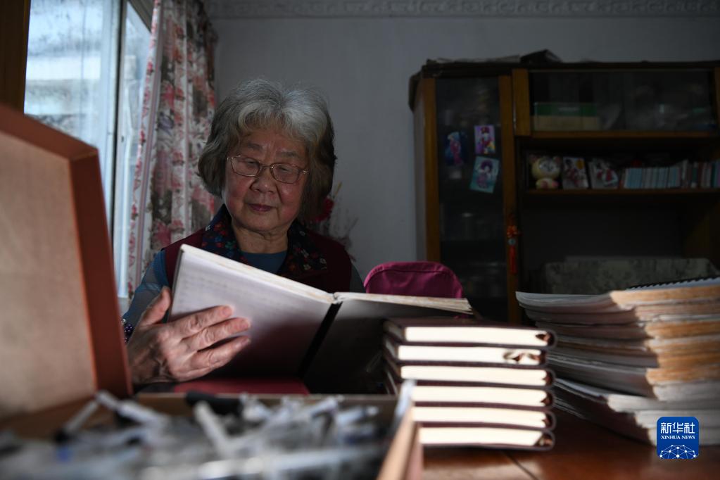 5月17日,張愛(ài)蘭在安徽蕪湖的家中翻看她寫(xiě)的小說(shuō)手稿《繾綣曲》。