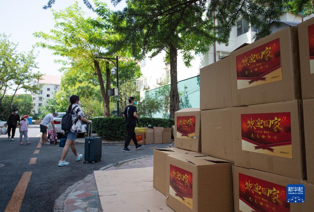 社區為回家居民準備了防疫和生活物資(5月28日攝)。