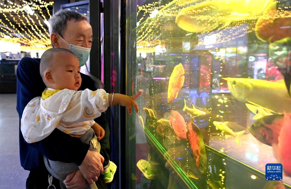 市民在西安際華3511文創(chuàng )科技園內的魚(yú)市觀(guān)賞游玩(5月20日攝)。