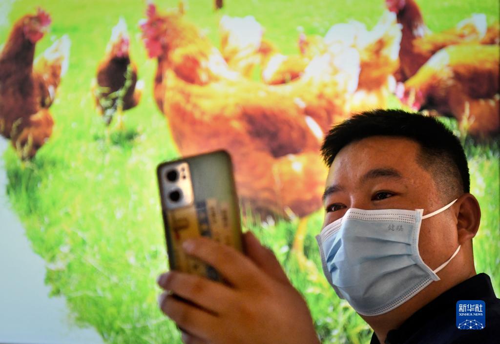 張占領(lǐng)在位于鄭州市二七區的店鋪內進(jìn)行短視頻平臺直播推廣(5月31日攝)。