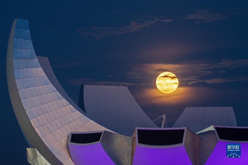 6月14日,超級月亮在新加坡濱海灣上空升起。