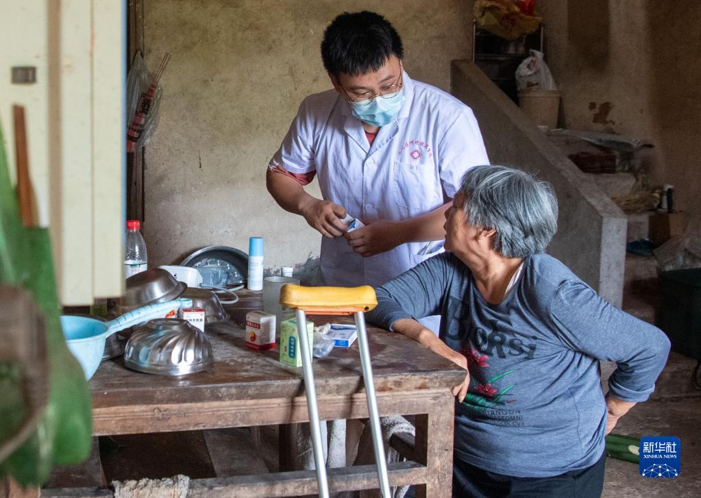 7月1日,村醫胡嘯(左)在村民家中問(wèn)診。