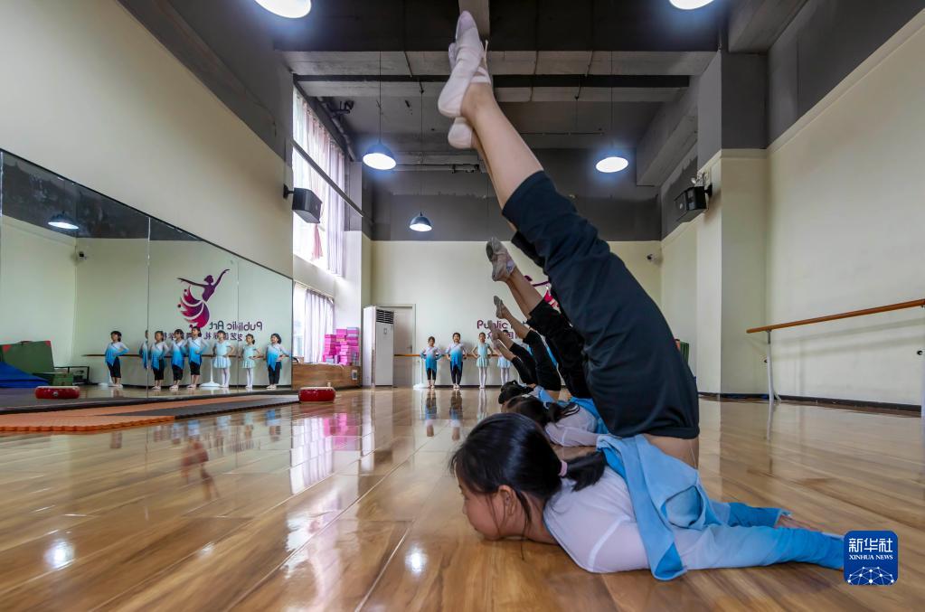 7月17日,學(xué)生在貴州省黔西市一家舞蹈培訓機構練習舞蹈。
