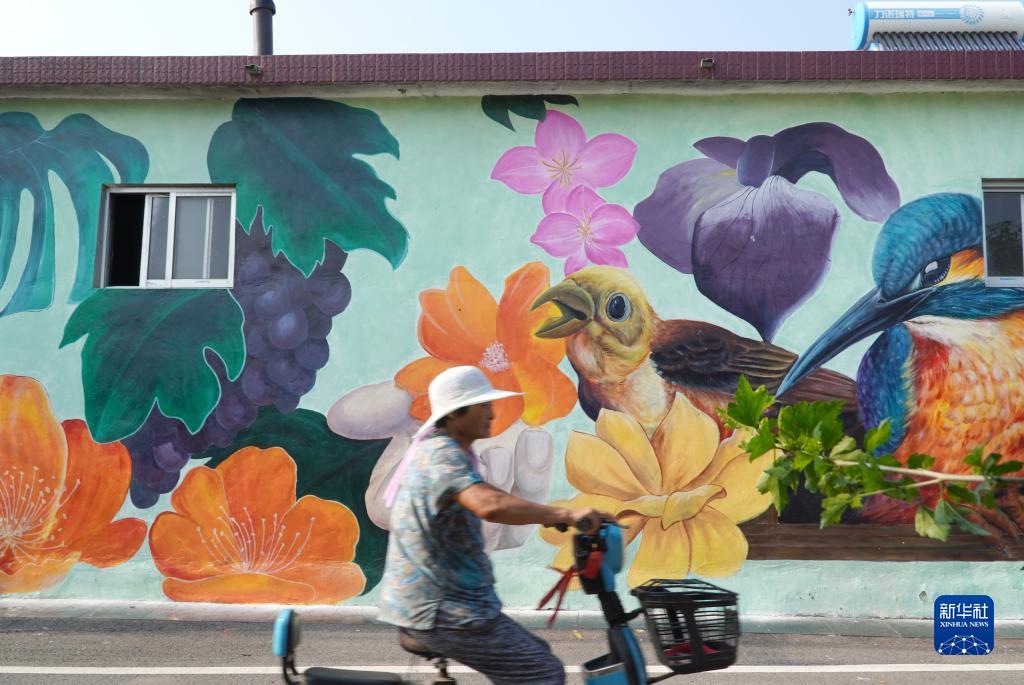 8月3日,北張村村民從墻繪藝術(shù)畫(huà)前經(jīng)過(guò)。
