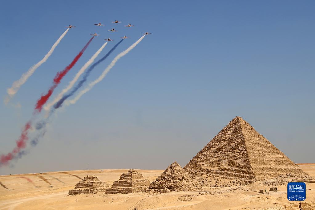 當日,埃及2022金字塔航空表演在吉薩金字塔景區舉行,來(lái)自埃及和韓國的多個(gè)飛行表演隊伍進(jìn)行了多項精彩的飛行表演。