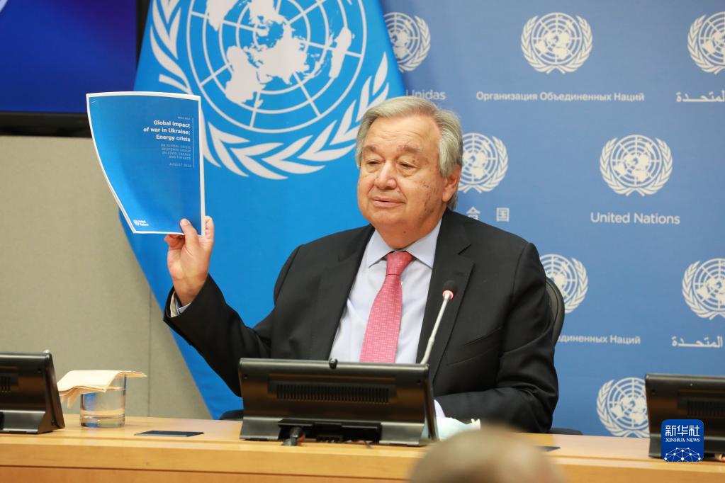 8月3日,在位于紐約的聯(lián)合國總部,聯(lián)合國秘書(shū)長(cháng)古特雷斯出席聯(lián)合國全球糧食、能源和金融危機應對小組第三次報告發(fā)布會(huì )。