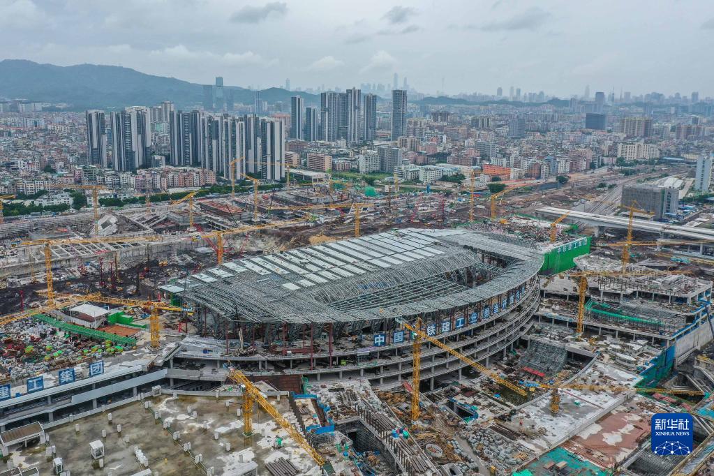 這是8月4日拍攝的建設中的廣州白云火車(chē)站(無(wú)人機照片)。