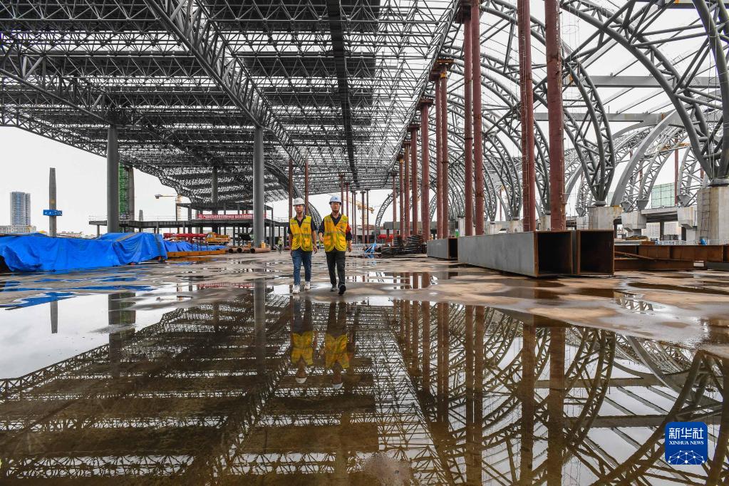8月4日,建設者在廣州白云火車(chē)站一期工程站房施工現場(chǎng)忙碌。