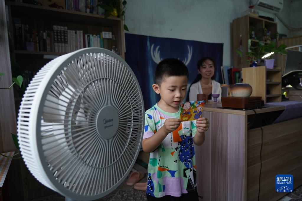 在四川省什邡市馬井鎮同心村,王忠禮和宇曉的兒子在書(shū)房朗誦詩(shī)歌(8月1日攝)。