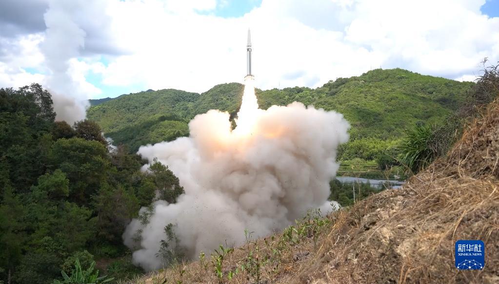 8月4日,東部戰區火箭軍對臺島東部外海預定海域實(shí)施火力突擊。這是導彈發(fā)射升空(視頻截圖)。