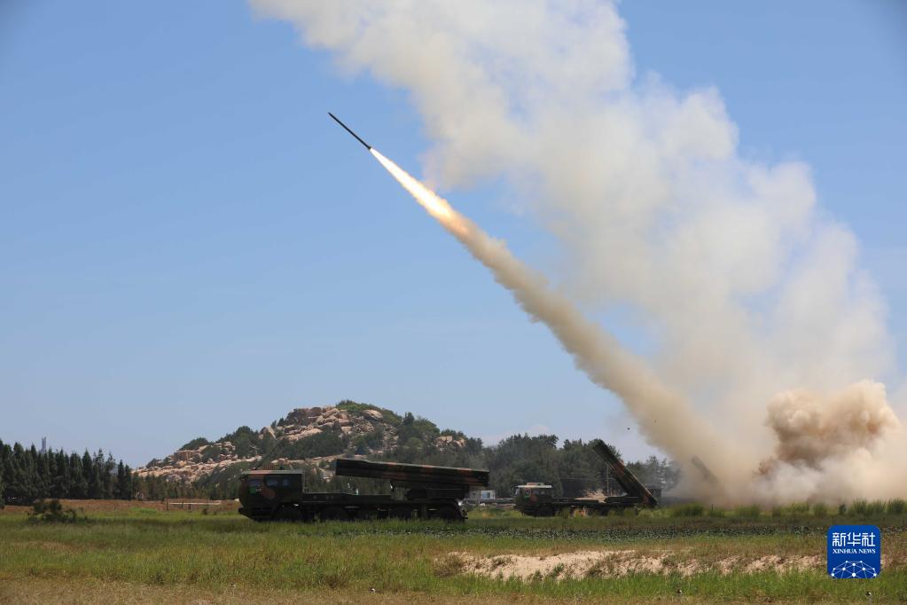 8月4日,東部戰區陸軍某旅組織遠火分隊在臺灣海峽組織實(shí)彈射擊,完成精確打擊任務(wù)。這是發(fā)射現場(chǎng)。