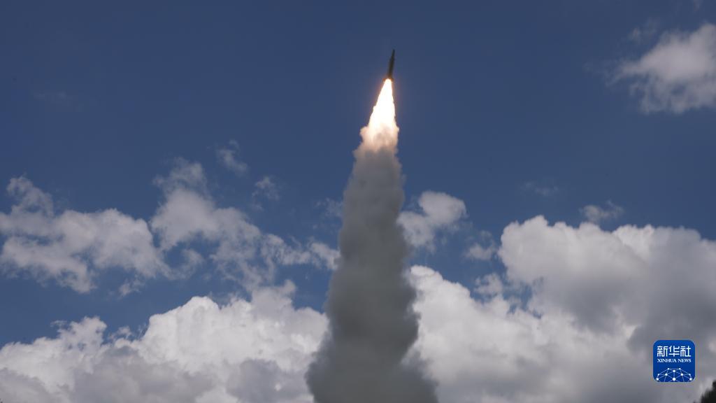 8月4日,東部戰區火箭軍對臺島東部外海預定海域實(shí)施火力突擊。這是導彈升空。