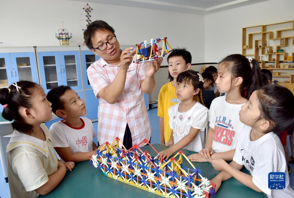 8月5日,河北省邢臺市南和區青少年活動(dòng)中心老師指導學(xué)員進(jìn)行手工創(chuàng )意搭建。