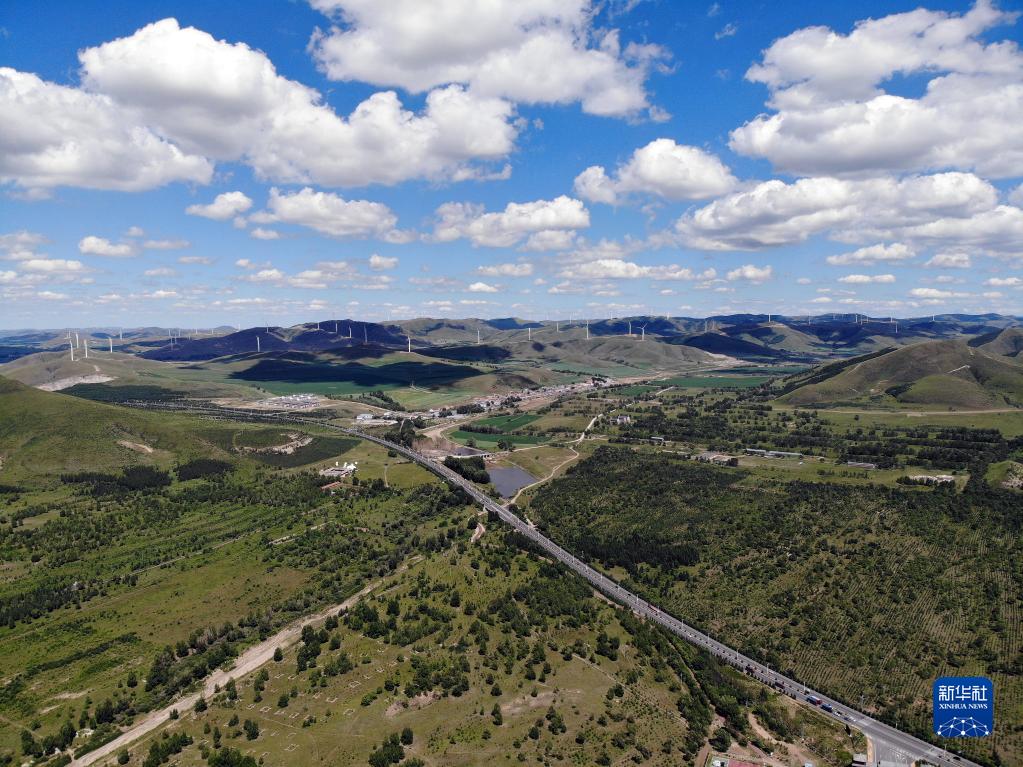 這是8月5日拍攝的豐寧滿(mǎn)族自治縣壩上草原景色(無(wú)人機照片)。