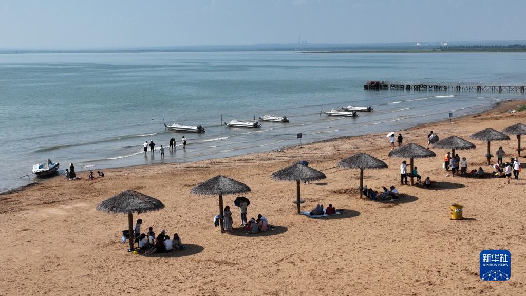 8月5日,游人在紅堿淖景區休閑(無(wú)人機照片)。