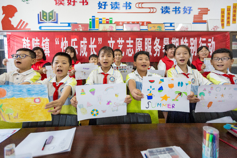 安陽(yáng)縣組織53名返鄉大學(xué)生在新時(shí)代文明所(站)、鄉村復興少年宮開(kāi)展了“快樂(lè )成長(cháng)?”文藝志愿服務(wù)暑期特別行動(dòng),通過(guò)繪畫(huà)、籃球、歌曲、舞蹈、手工、象棋、經(jīng)典誦讀等活動(dòng),教育和引導少年兒童立志向、有夢(mèng)想,塑造陽(yáng)光、自信、勇敢等良好品德行為,在潛移默化中提高孩子們的藝術(shù)素養,促進(jìn)其全面發(fā)展和健康成長(cháng)。新華網(wǎng)發(fā)(王建安 攝)