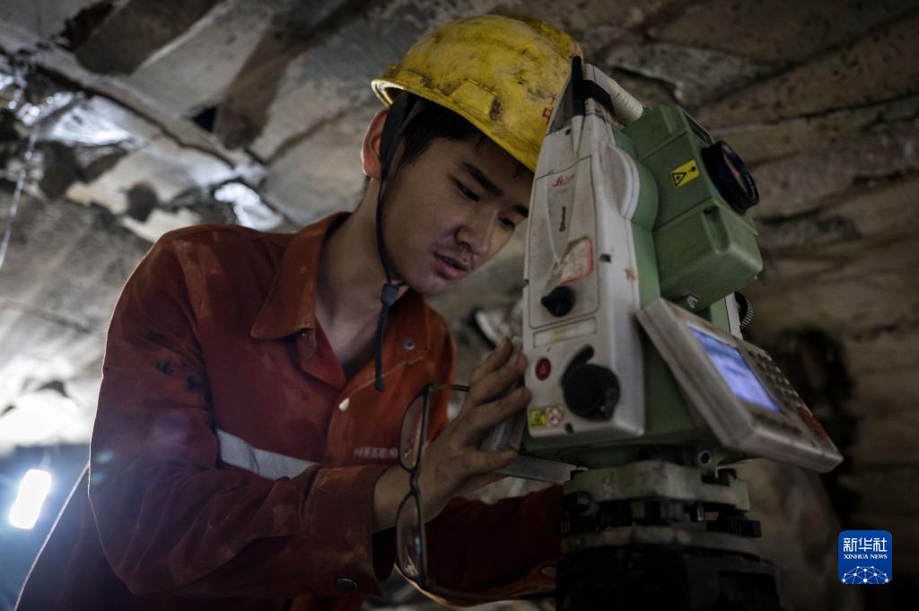 8月4日,在高黎貢山隧道掌子面施工處,測繪員為防止誤差取下眼鏡進(jìn)行測繪。