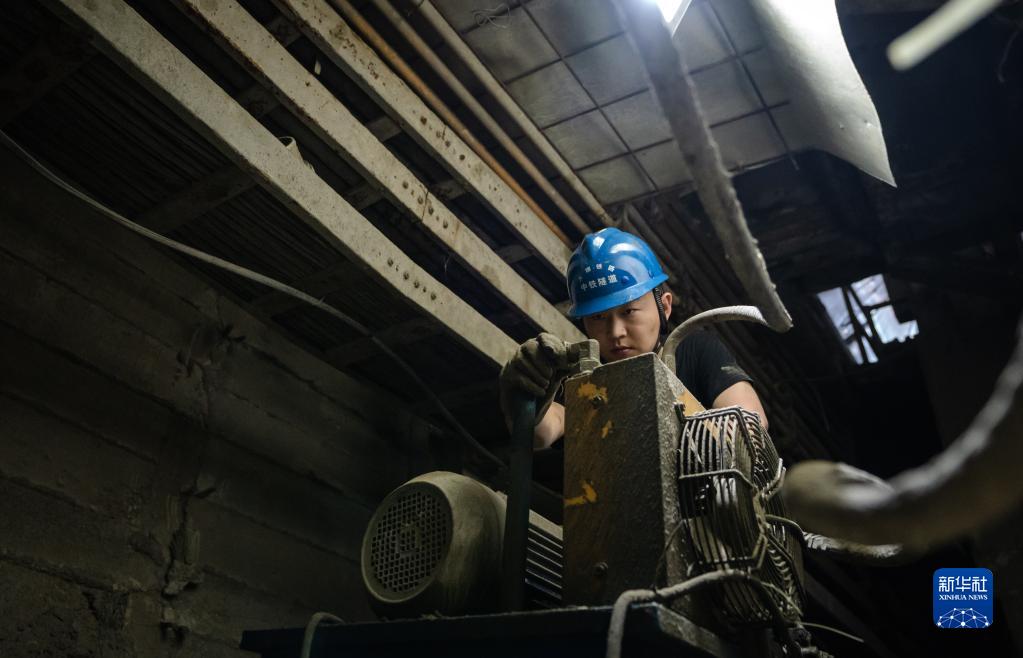 8月4日,施工人員在高黎貢山隧道內檢查施工設施。