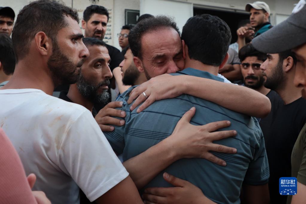 8月5日,人們在加沙城一所醫院哀悼在空襲中遇難的親人。