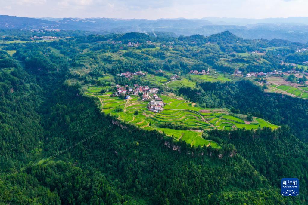 這是8月2日拍攝的重慶市萬(wàn)州區恒合土家族鄉八一村景色(無(wú)人機照片)。