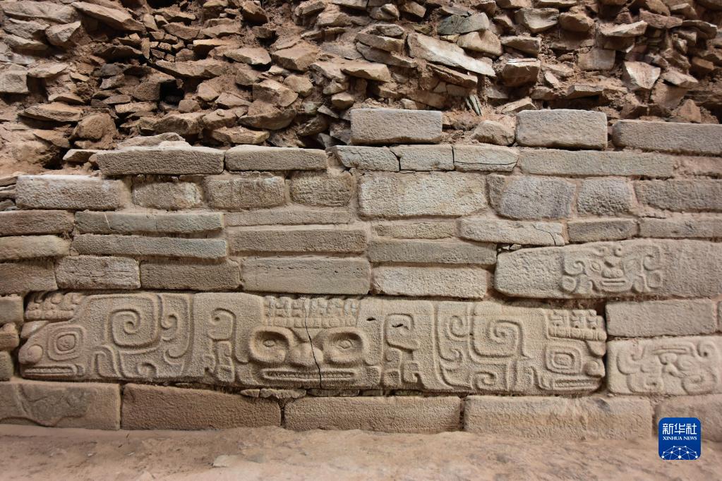 這是8月6日拍攝的陜西神木石峁遺址皇城臺出土石雕。