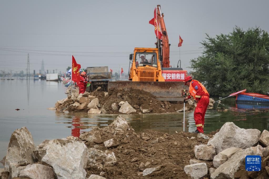 8月6日,搶險人員在潰口處進(jìn)行封堵作業(yè)。
