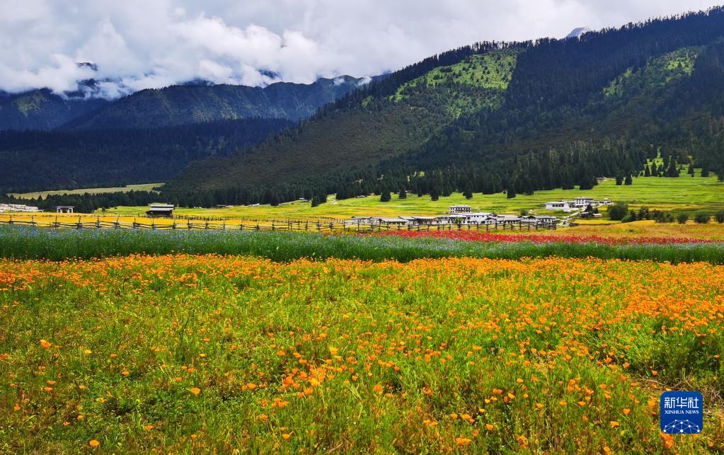 夏日的魯朗鎮,溪水潺潺,鮮花盛開(kāi),藏式村寨點(diǎn)綴其間,勾畫(huà)出一幅恬靜、優(yōu)美的“高原山居圖”。