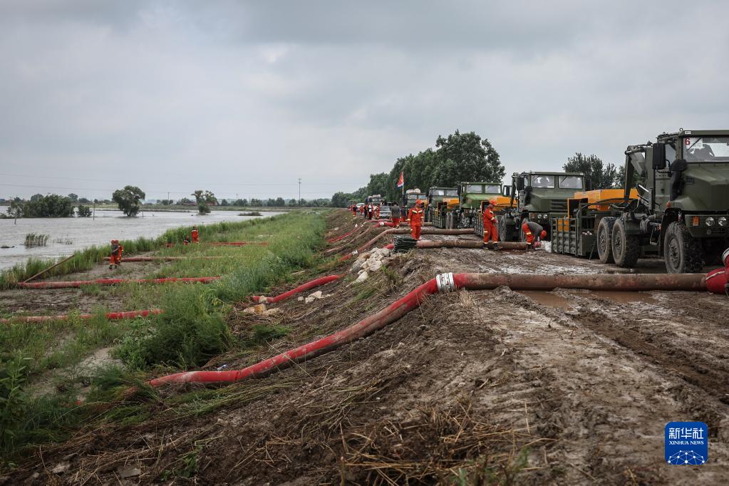 8月7日,搶險人員在遼寧盤(pán)錦繞陽(yáng)河左岸曾經(jīng)的河堤潰口北段進(jìn)行排澇作業(yè)。