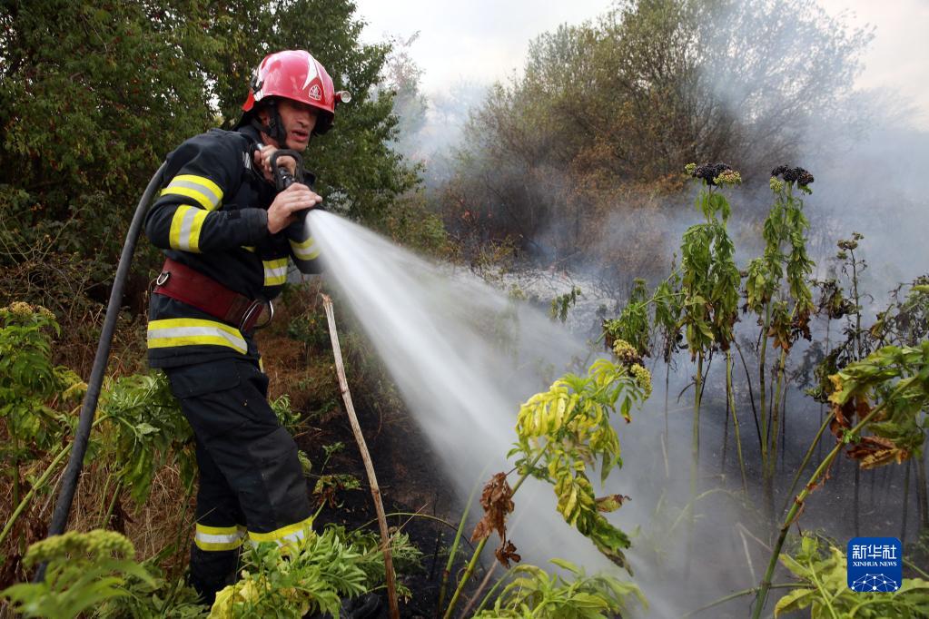 8月7日,在羅馬尼亞泰萊奧爾曼縣,消防員撲滅一處高溫引發(fā)的火災。