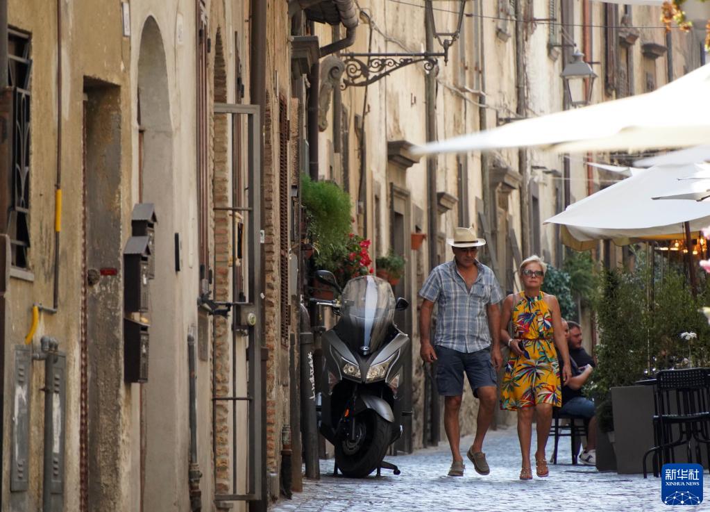 8月7日,游客在意大利布拉恰諾觀(guān)光。