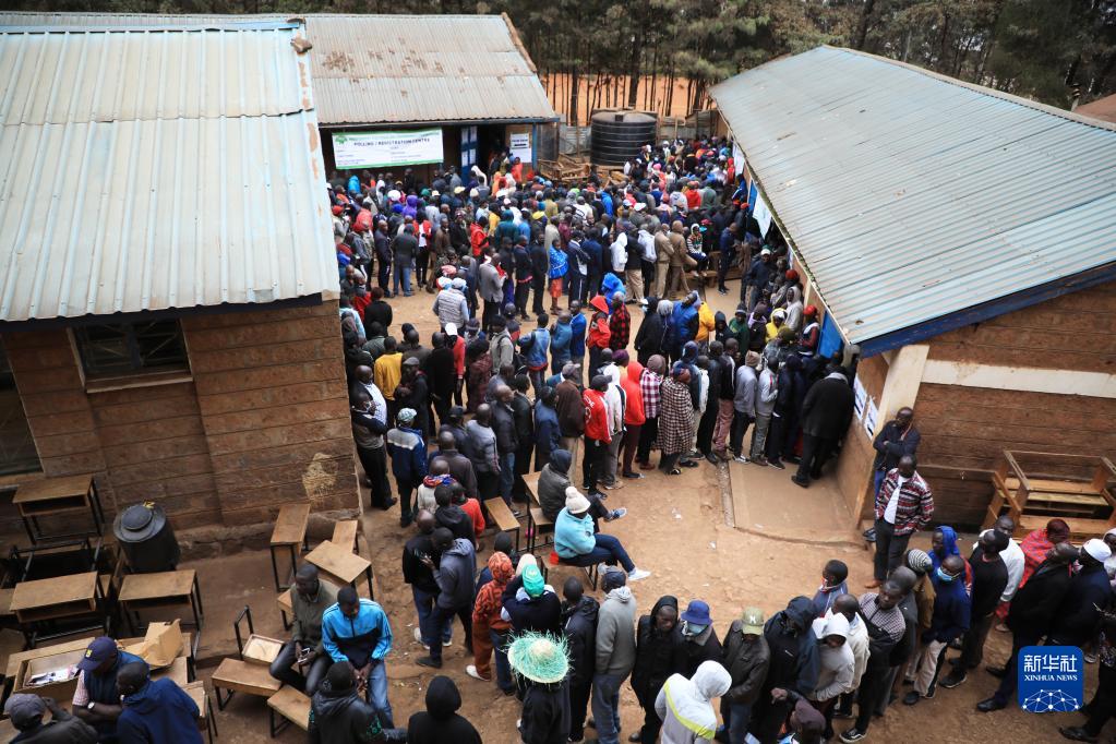 8月9日,人們在肯尼亞內羅畢基貝拉貧民區一投票站排隊參加大選投票。