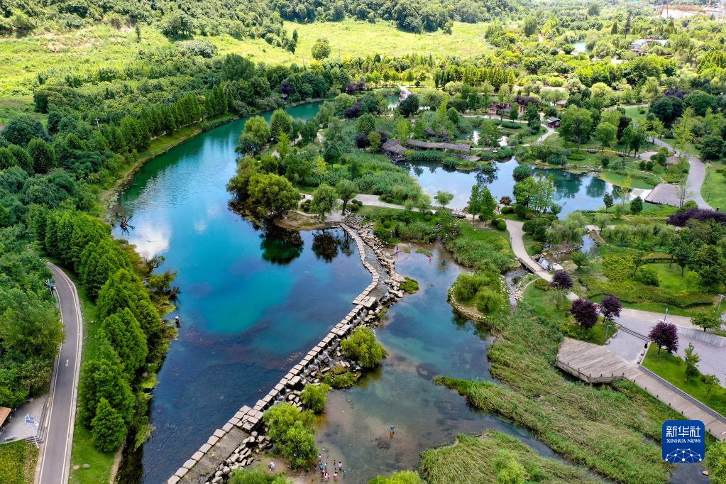 8月9日拍攝的花溪國家城市濕地公園十里河灘景區風(fēng)光(無(wú)人機照片)。