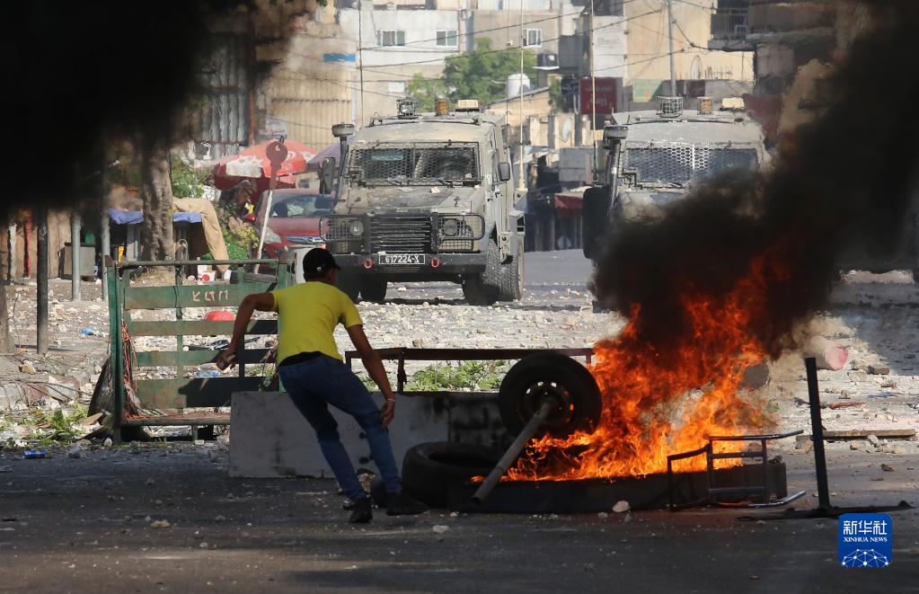 8月9日,在約旦河西岸城市納布盧斯,巴勒斯坦抗議者與以色列軍隊對峙。