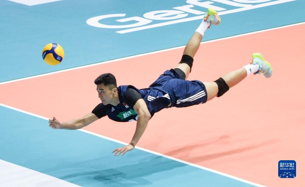 當日,在泰國佛統舉行的2022年男排亞洲杯小組賽中,中國隊以3比1擊敗巴林隊。新華社發(fā)(拉亨攝)
