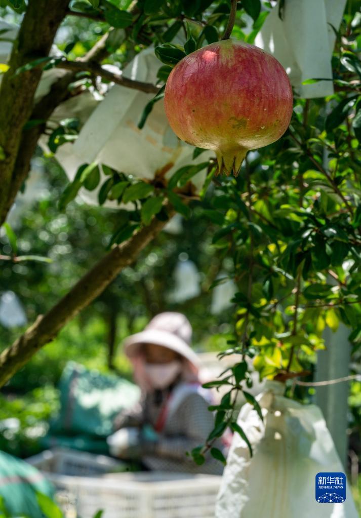 果農在云南蒙自市草壩鎮的五八農業(yè)軟籽石榴種植基地采摘石榴(8月9日攝)。