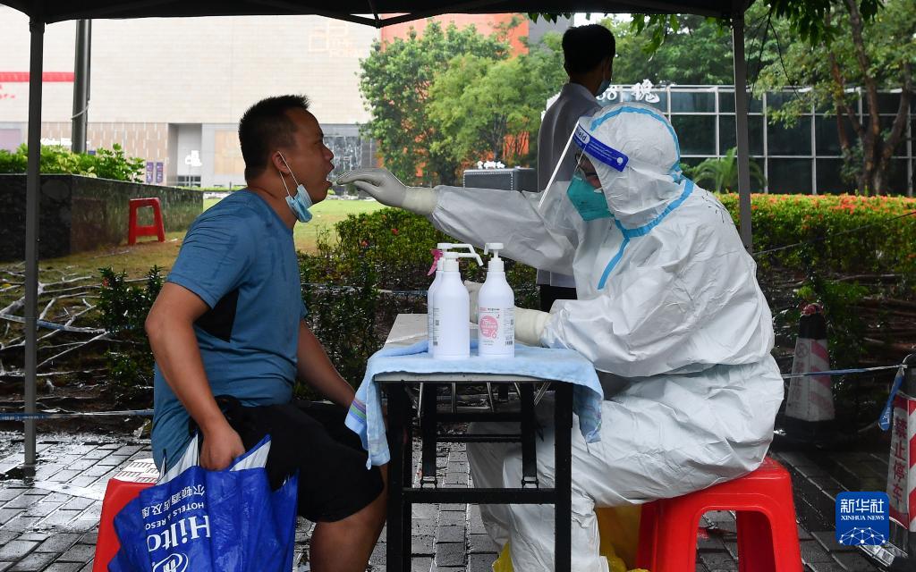 8月10日,居民在??谑旋埲A區百方廣場(chǎng)核酸采樣點(diǎn)接受核酸采樣。