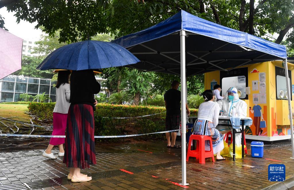 8月10日,居民在??谑旋埲A區百方廣場(chǎng)核酸采樣點(diǎn)接受核酸采樣。