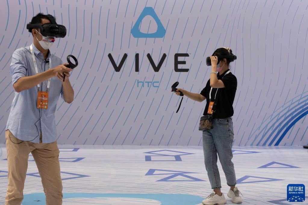 8月10日,人們在2022世界5G大會(huì )展廳里體驗5G網(wǎng)絡(luò )支持下的VR設備。
