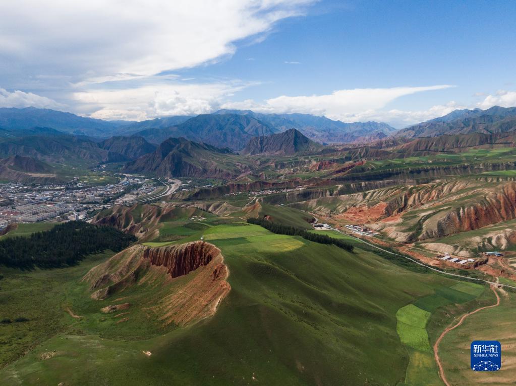 青海省海北藏族自治州祁連縣風(fēng)光(8月10日攝,無(wú)人機照片)。