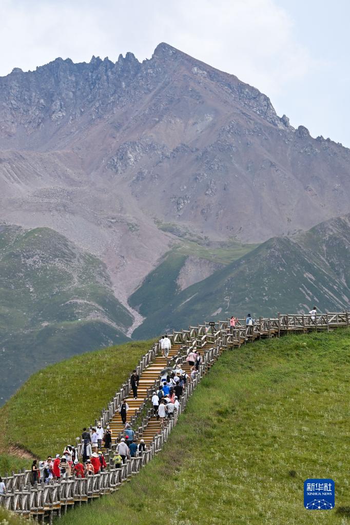 8月10日,游客在青海省海北藏族自治州祁連縣卓爾山景區游玩。
