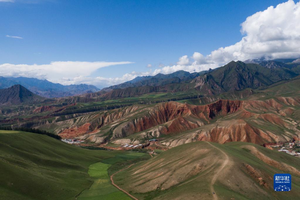 青海省海北藏族自治州祁連縣風(fēng)光(8月10日攝,無(wú)人機照片)。