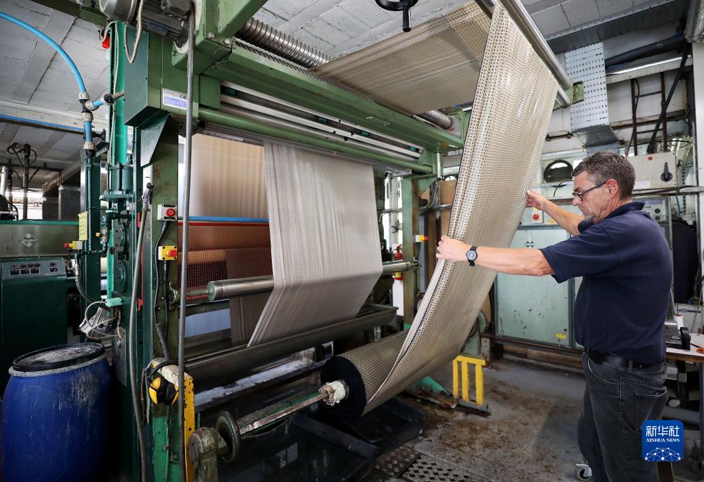 8月11日,工人在英國麥克爾斯菲爾德一家絲綢工廠(chǎng)內工作。
