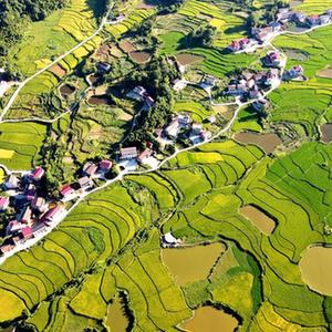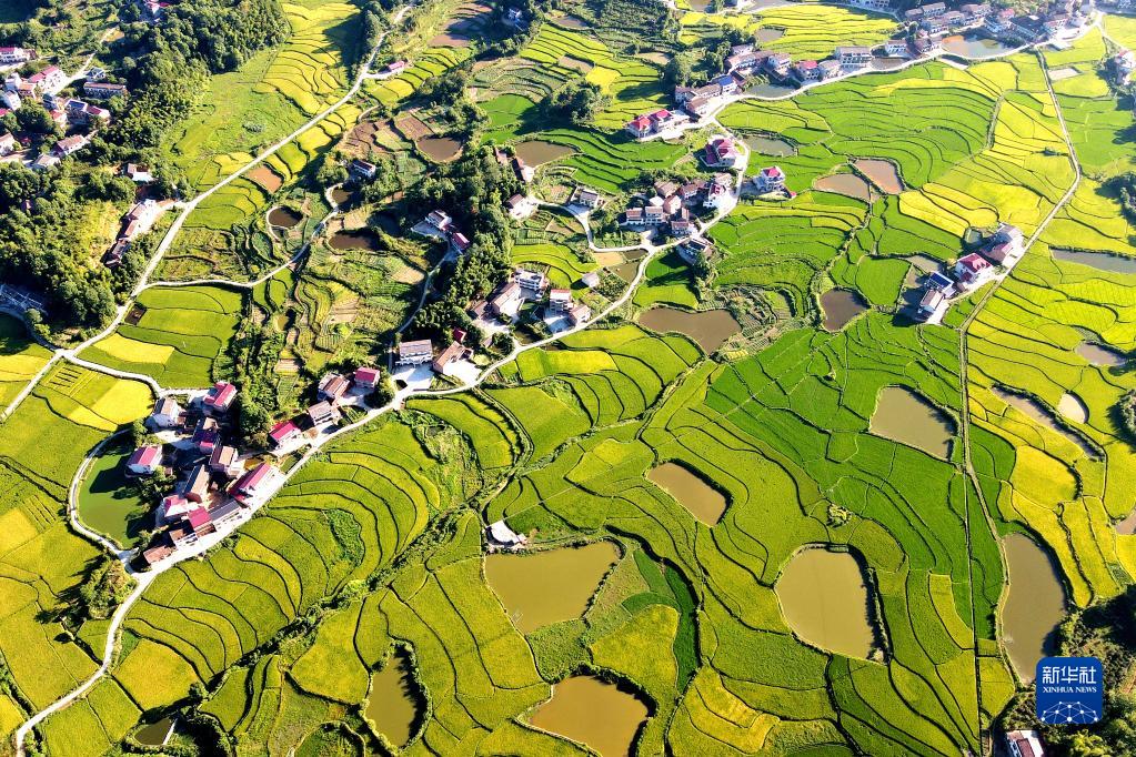 8月12日在湖南省雙峰縣井字鎮拍攝的再生稻田(無(wú)人機照片)。
