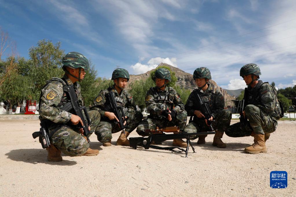 武警西藏總隊某中隊副小隊長(cháng)楊友剛(中)進(jìn)行狙擊教學(xué)(8月9日攝)。新華社發(fā)(李如輝 攝)
