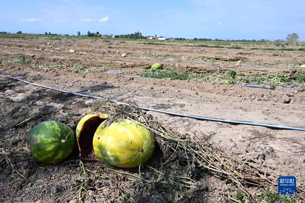 這是8月12日在意大利倫巴第大區曼托瓦拍攝的因干旱受損的西瓜。