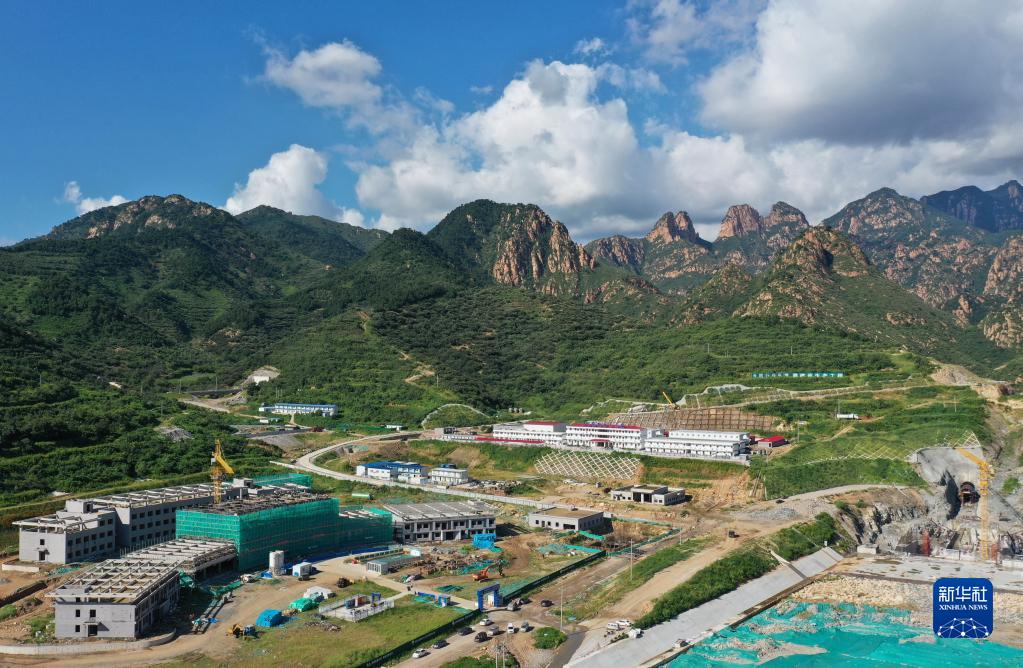 8月13日拍攝的秦皇島市撫寧抽水蓄能電站建設工地(無(wú)人機照片)。