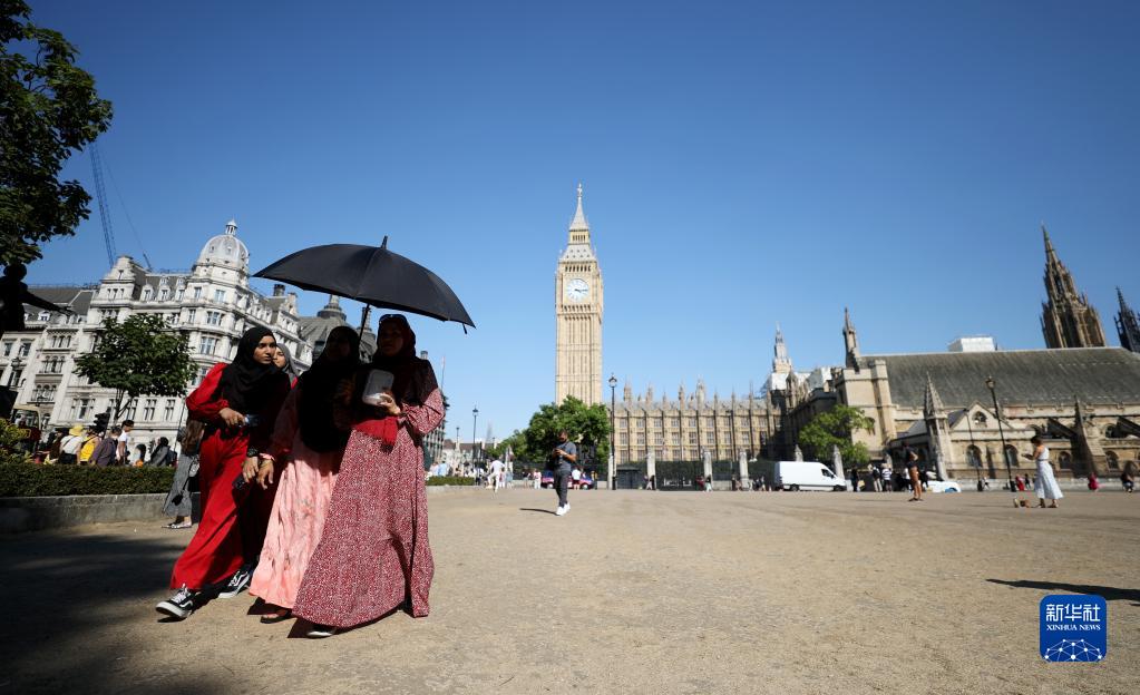 8月13日,在英國倫敦議會(huì )廣場(chǎng),人們走過(guò)枯黃的草地。